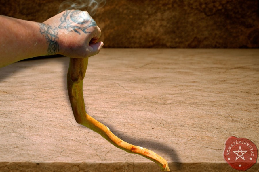 Cajado exclusivo forjado em galho natural de Aceroleira, com curvatura original e tonalidade preservada, guardando em si os registros do tempo pela própria Mãe Terra. A extensão vibrante da natureza que renasce, pulsa e ressoa com alegria, renovação e força vital. Suas marcas e nuances carregam a memória da árvore, do solo e da luz solar, revelando o poder ancestral em cada traço.