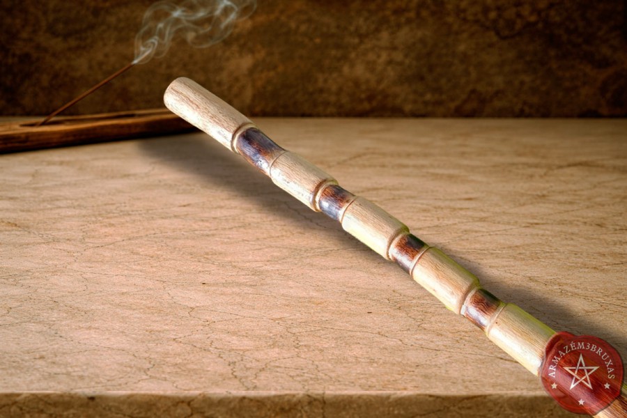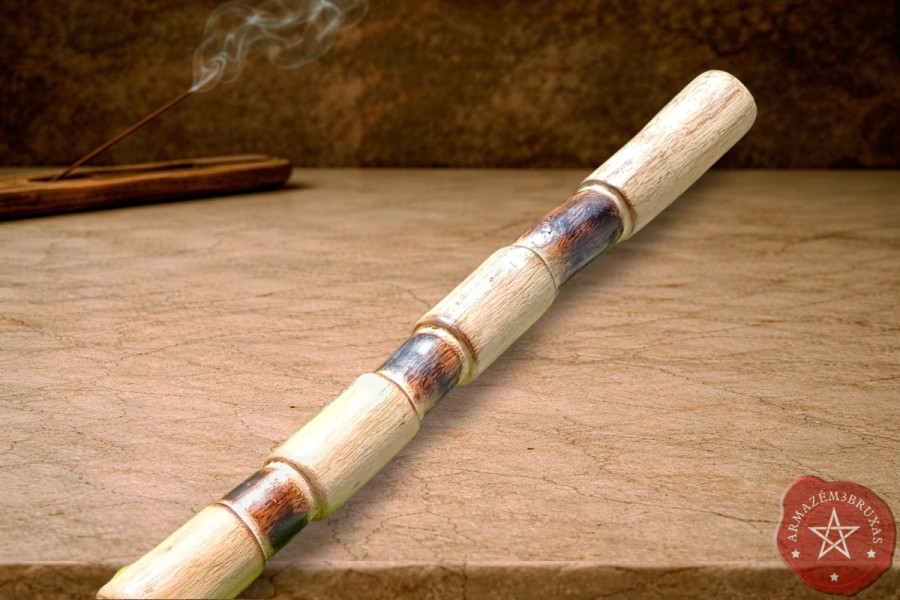 Este modelo apresenta haste personalizada com entalhes, oferecendo opção de seu futuro zelador gravar em relevo até quatro selos mágicos sem custo adicional.