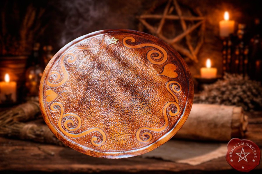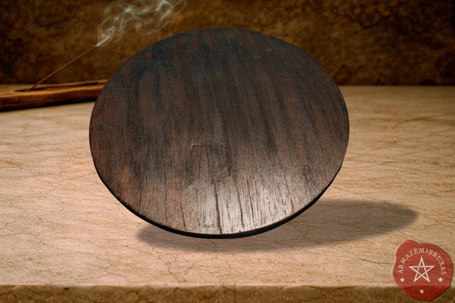 A Tábua de Leitura Rúnica é dedicada a práticas de oráculo com o Futhark, Runas das Bruxas ou outros sistemas de sabedoria simbólica. Sua base circular representa o eterno ciclo da natureza, enquanto o couro funciona como uma ponte tátil entre os elementos e os mundos sutis. O Pentagrama : símbolo de proteção e unidade dos cinco elementos - sela energeticamente a peça, tornando-a ideal para rituais, consagrações e consultas mágicas. Ao lançar as peças sobre o couro marcado pelos símbolos sagrados, o consulente toca o véu entre os mundos e abre caminho para que os Decretos Universais se revelem em linguagem rúnica.