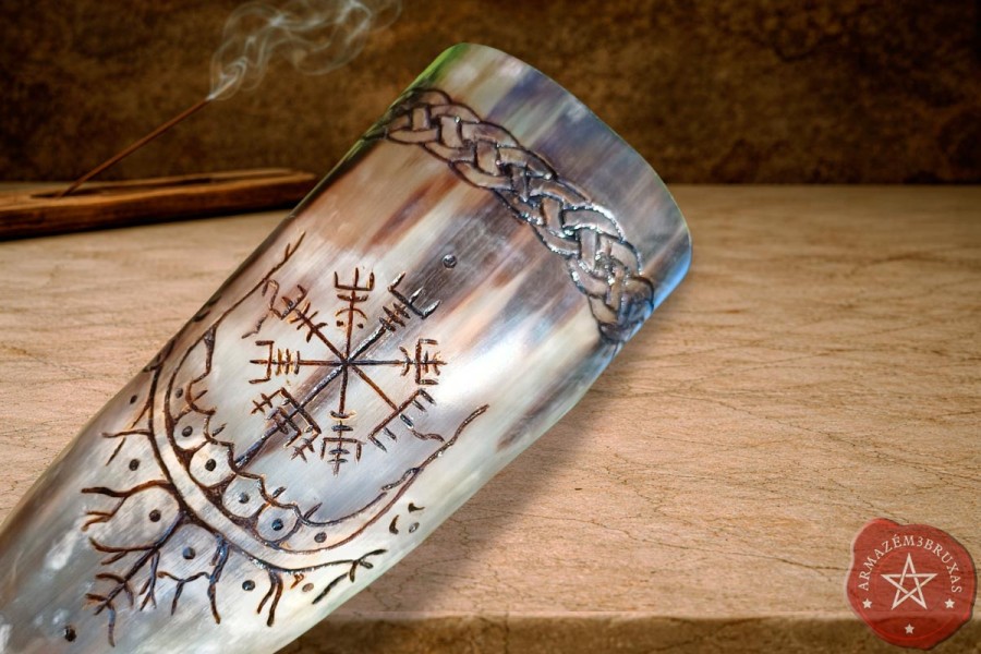 Forjado a partir de chifre bovino natural, este Drinking Horn preserva sua curvatura orgânica, tonalidade única e textura autêntica, respeitando a essência bruta da matéria. O brilho espelhado é alcançado por meio de polimento artesanal, revelando a beleza viva do chifre, tornando-o absolutamente exclusivo.