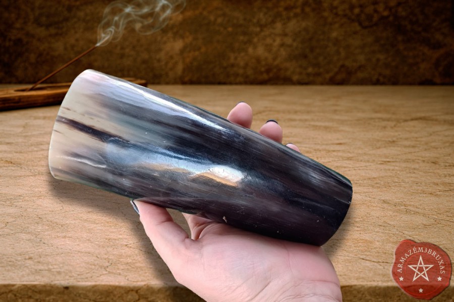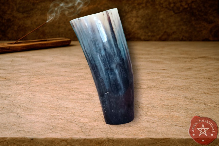 O Horn é símbolo cerimonial de poder, sacralidade e conexão. Em diversas culturas, é usado como instrumento de celebração mágica, evocando a força vital e a abundância dos reinos espiritual e material. Seu formato ancestral representa o cálice dos mundos - onde o brinde se torna ato sagrado, de gratidão, honra e manifestação.