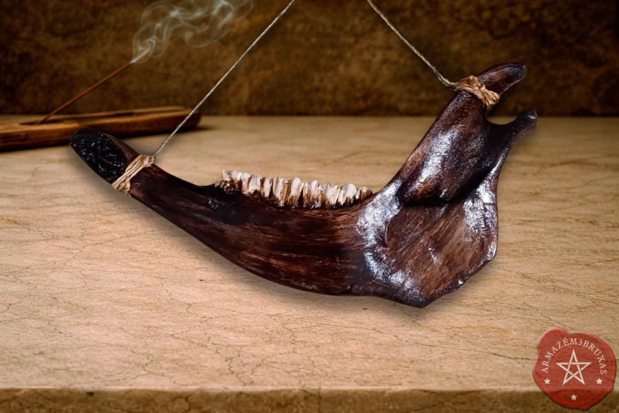 Esta mandíbula bovina carregando marcas como testemunho do tempo e da natureza, chegou ao Armazem3bruxas como matéria devolvida à Terra. Foi acolhida, higienizada e magnetizada pela união dos Elementos.