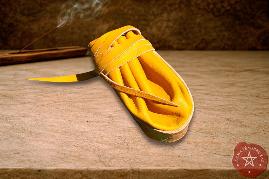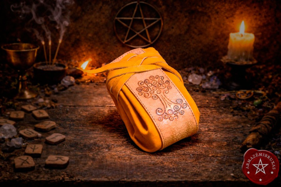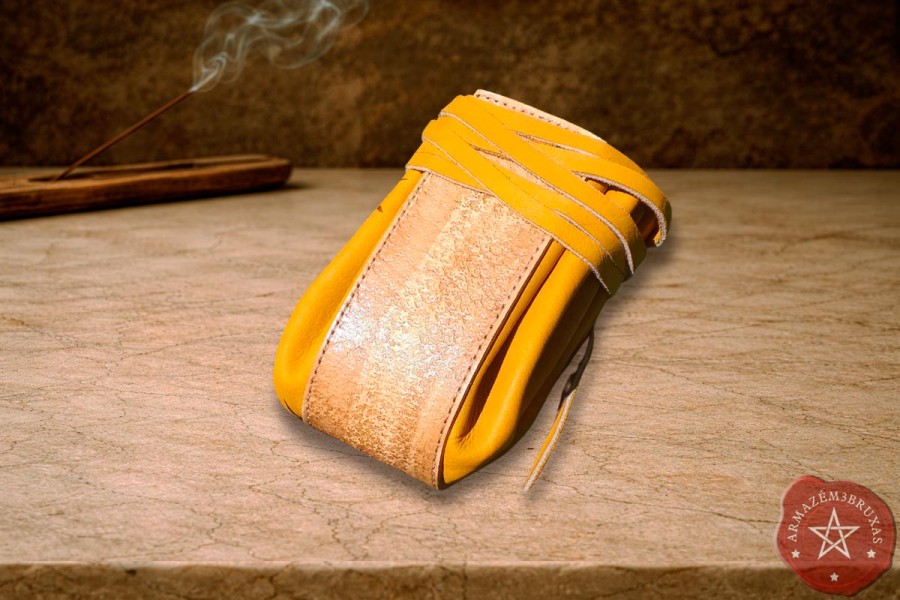 Portador da força que une Céu, Terra e Submundo, este saquinho em couro é um instrumento de enraizamento, conexão e proteção. Modelado artesanalmente em Vaqueta Nobuck Abufalado, possui estrutura encorpada e sem divisões internas - ideal para guardar runas, amuletos ou instrumentos de poder.