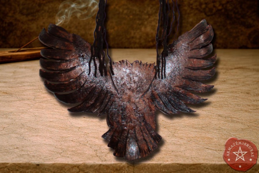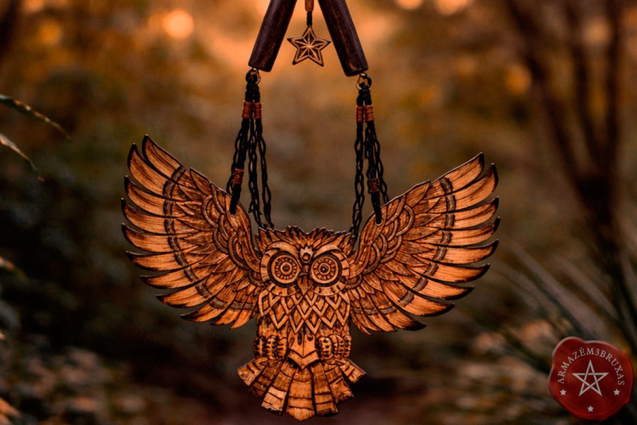 Assentado sobre galho natural, esse talismã é suspenso, pronto para ser fixado em altares, portais de circulação ou espaços de leitura oracular, evocando a presença silenciosa e potente da sentinela do Mundo Oculto.