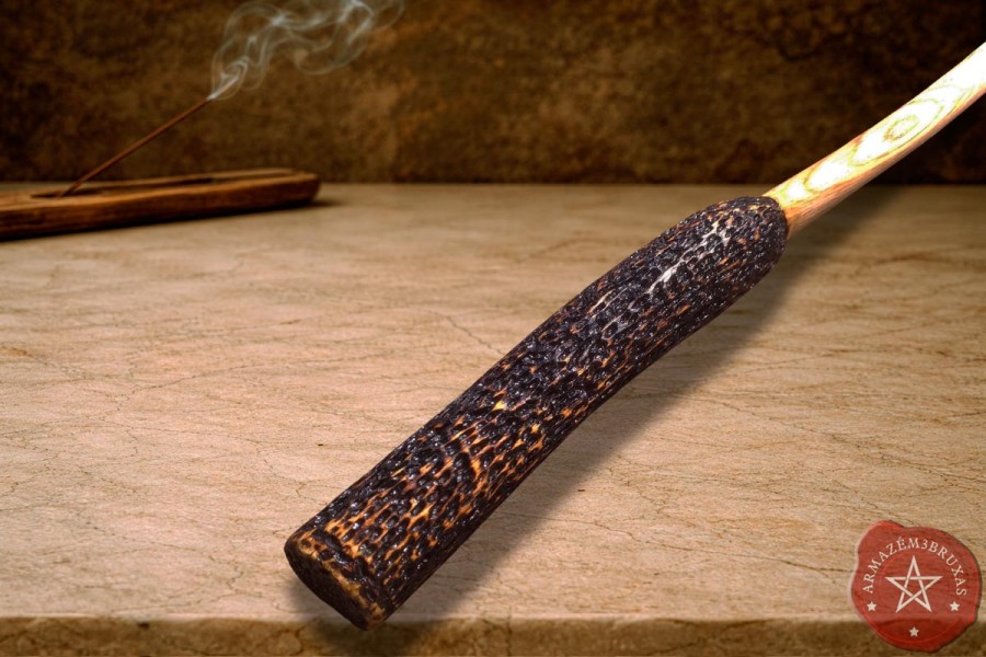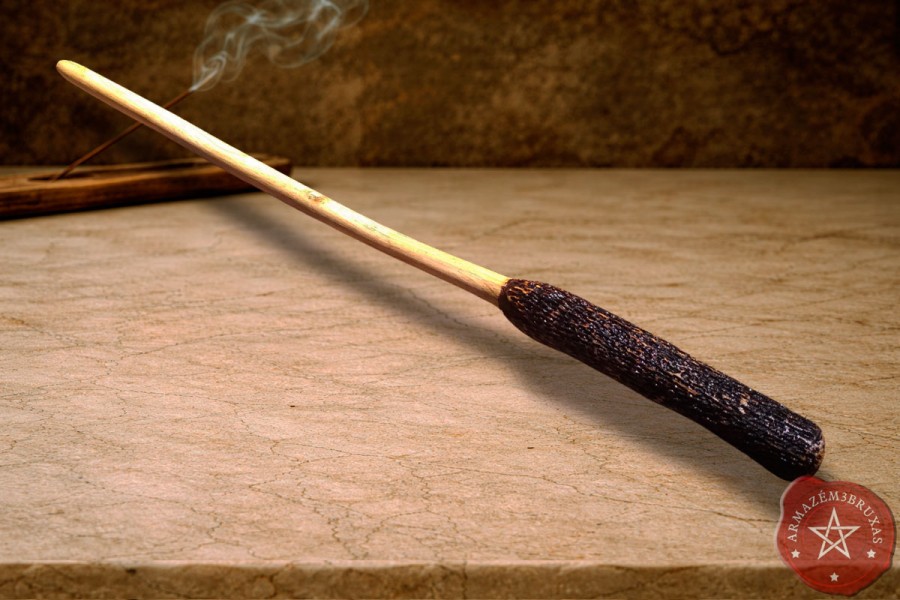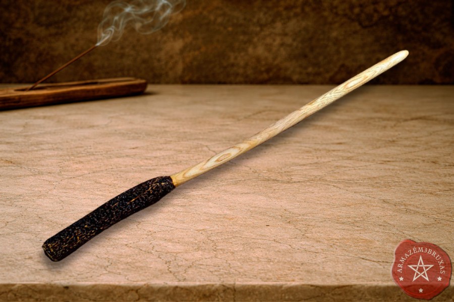 Varinha de magia, modelada artesanalmente em galho de Figueira Branca - árvore sagrada que carrega em sua seiva a sabedoria dos antigos e a centelha da vida.